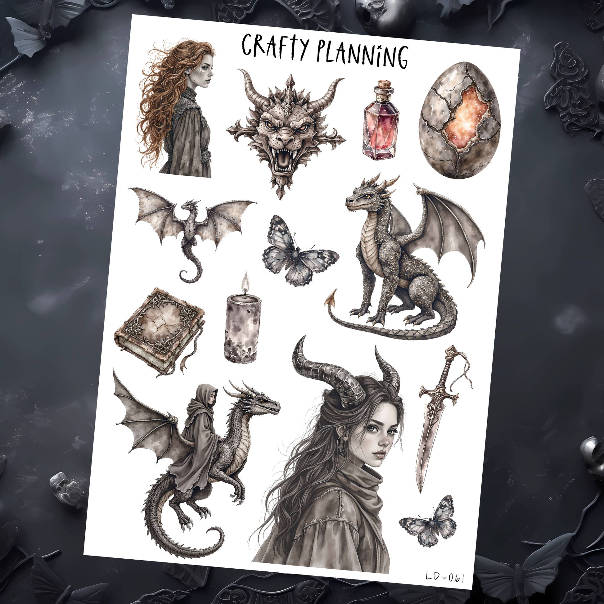 Dragon Stickers, Dragoncore, Deco Sticker Sheet, Planner Stickers, Journal Stickers, Fantasy Stickers, Mythical Stickers, Bookish Stickers