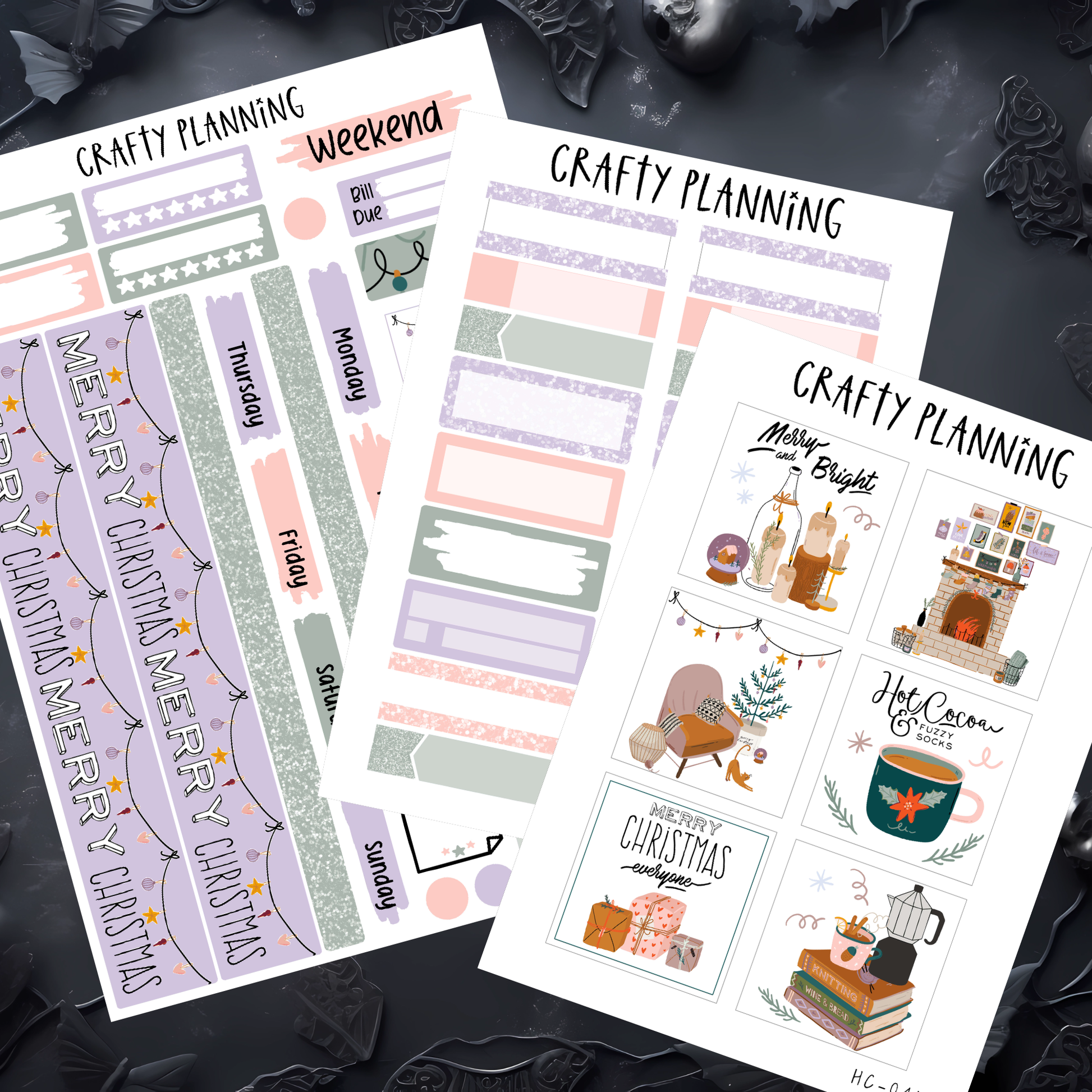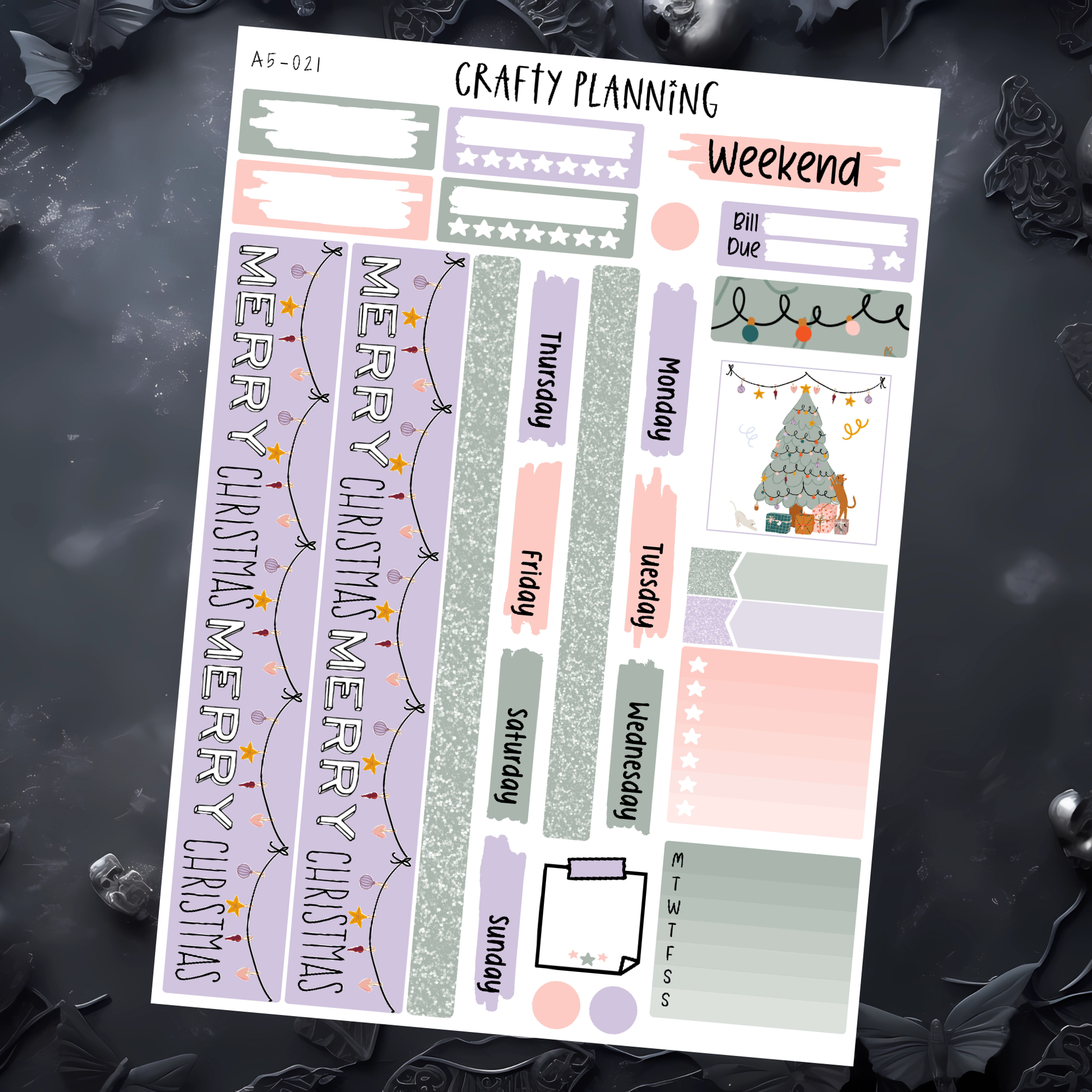 Pastel Xmas Planner Kit, Christmas Stickers, A5 Weekly Xmas Kit, Kinbor Planner, Hobonichi Cousin, Sterling Ink,Xmas Stickers,Merry & Bright