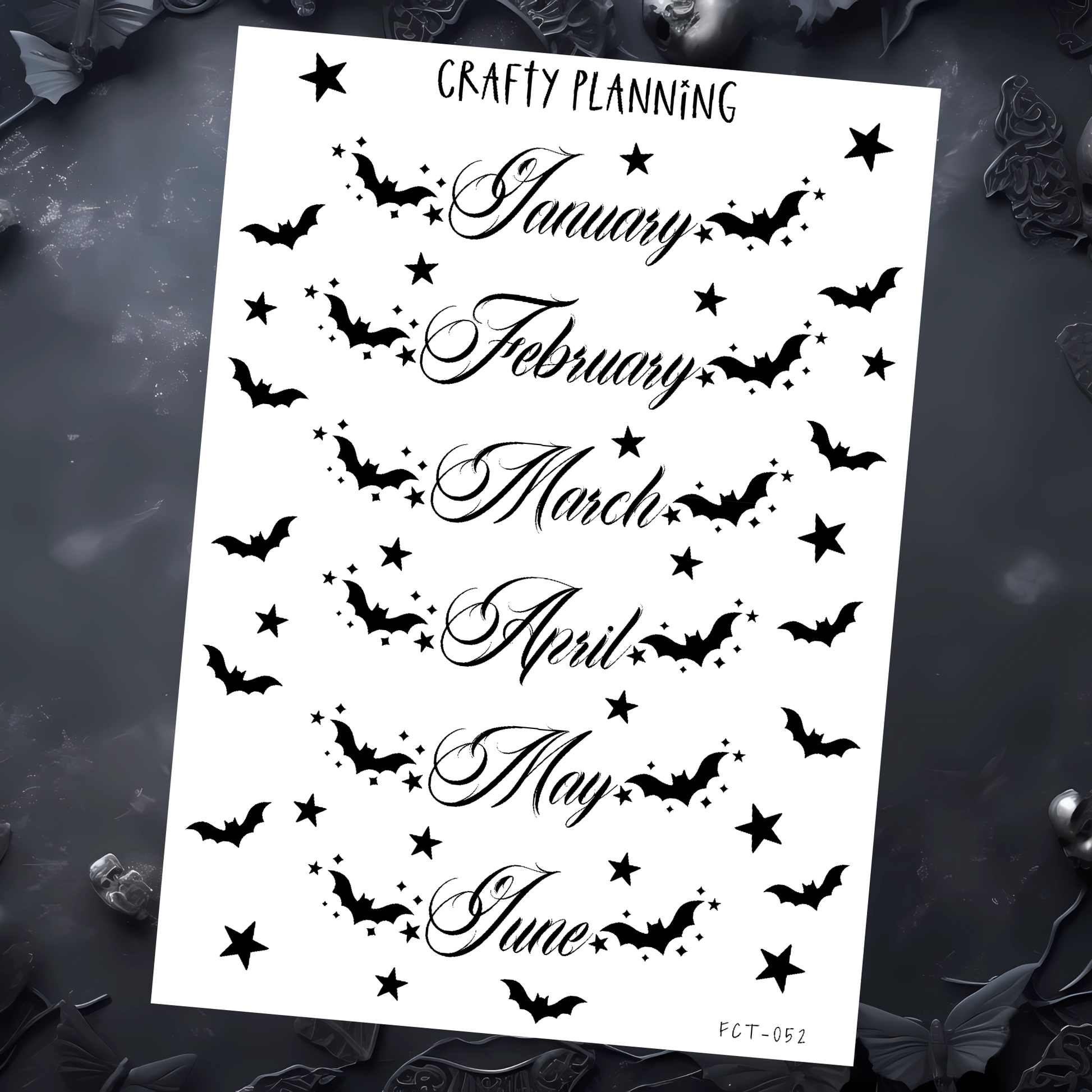 Monthly Stickers, Months Of The Year, Month Header, 2026 Stickers, Bat Stickers, Gothic Witchy Stickers, Planner Stickers, Journal Stickers