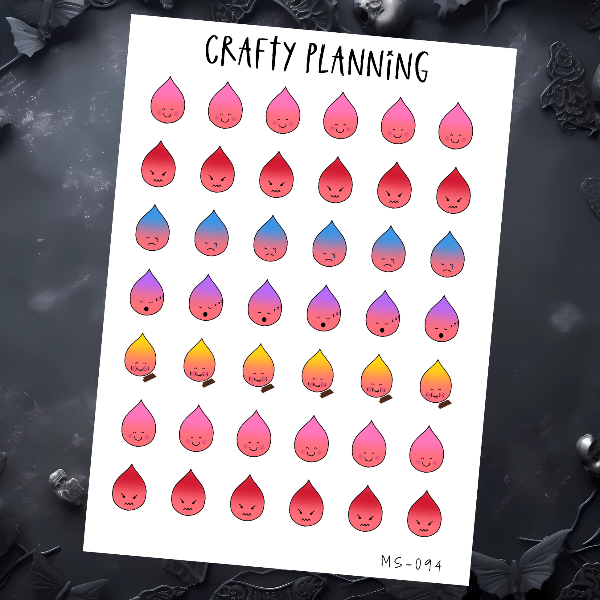 All sheets are available in standard matte or premium matte sticker paper. The premium matte offers brighter, more vibrant colours and the vinyl is thinner than the standard matte paper, meaning it won't bulk out your planner or journal so much.