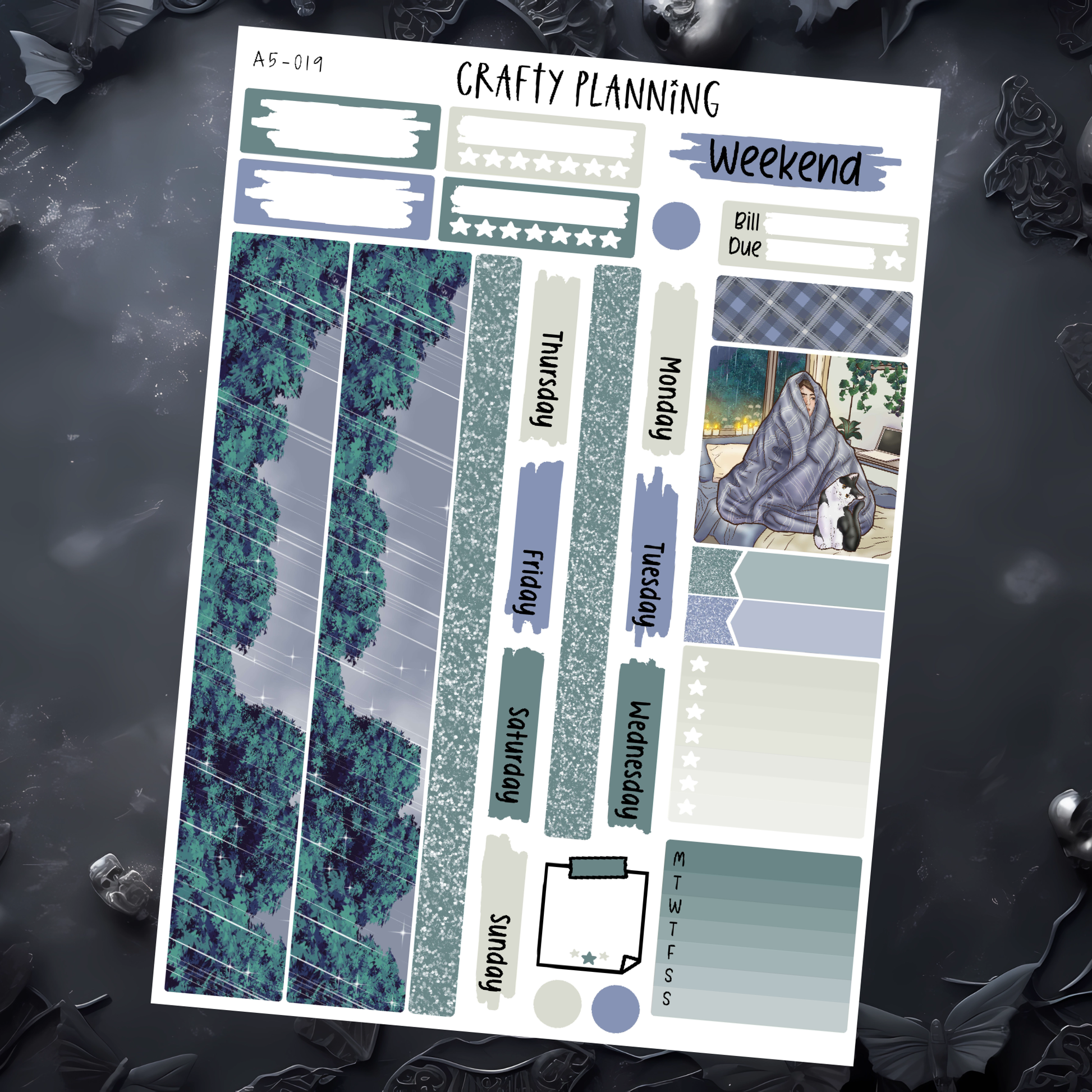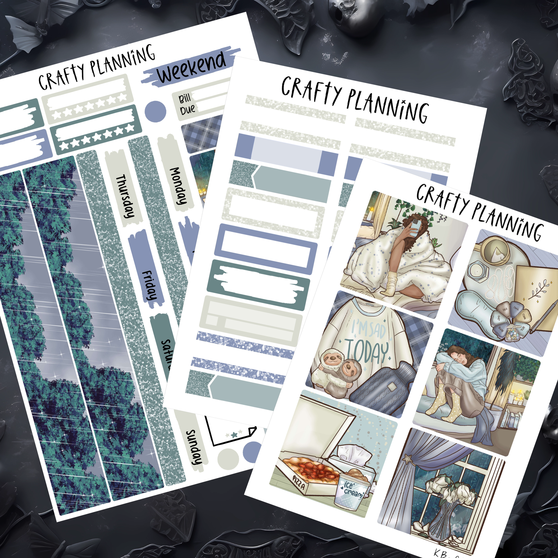 The large main sheet includes a base that fits all 3 of these planners, and there is the option to purchase the main sheet alone for a more minimal spread or to purchase as a kit bundle including the full and functional boxes. The full boxes and functional sheet are also available to purchase separately to enable you to create a spread that suits your needs and planner style.
