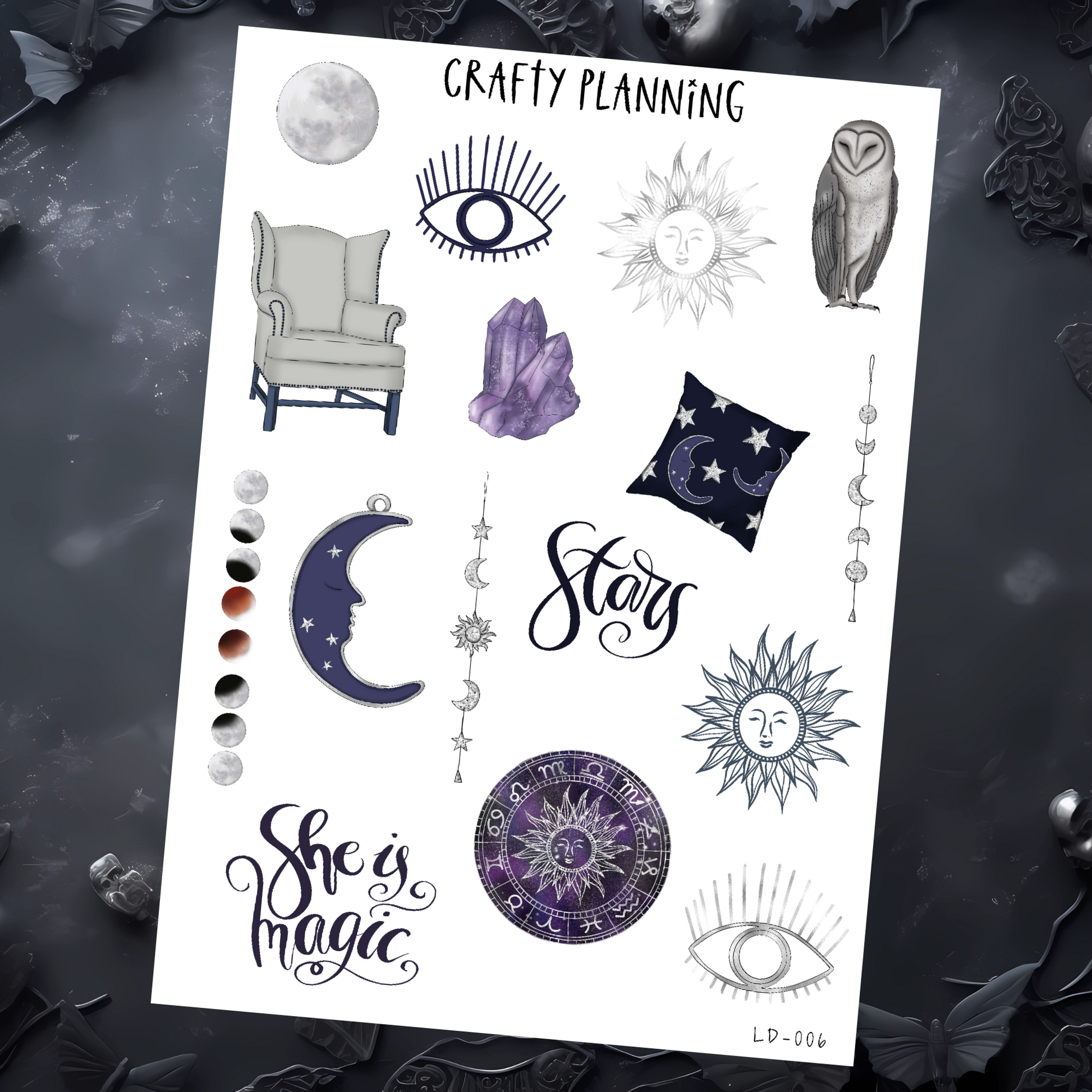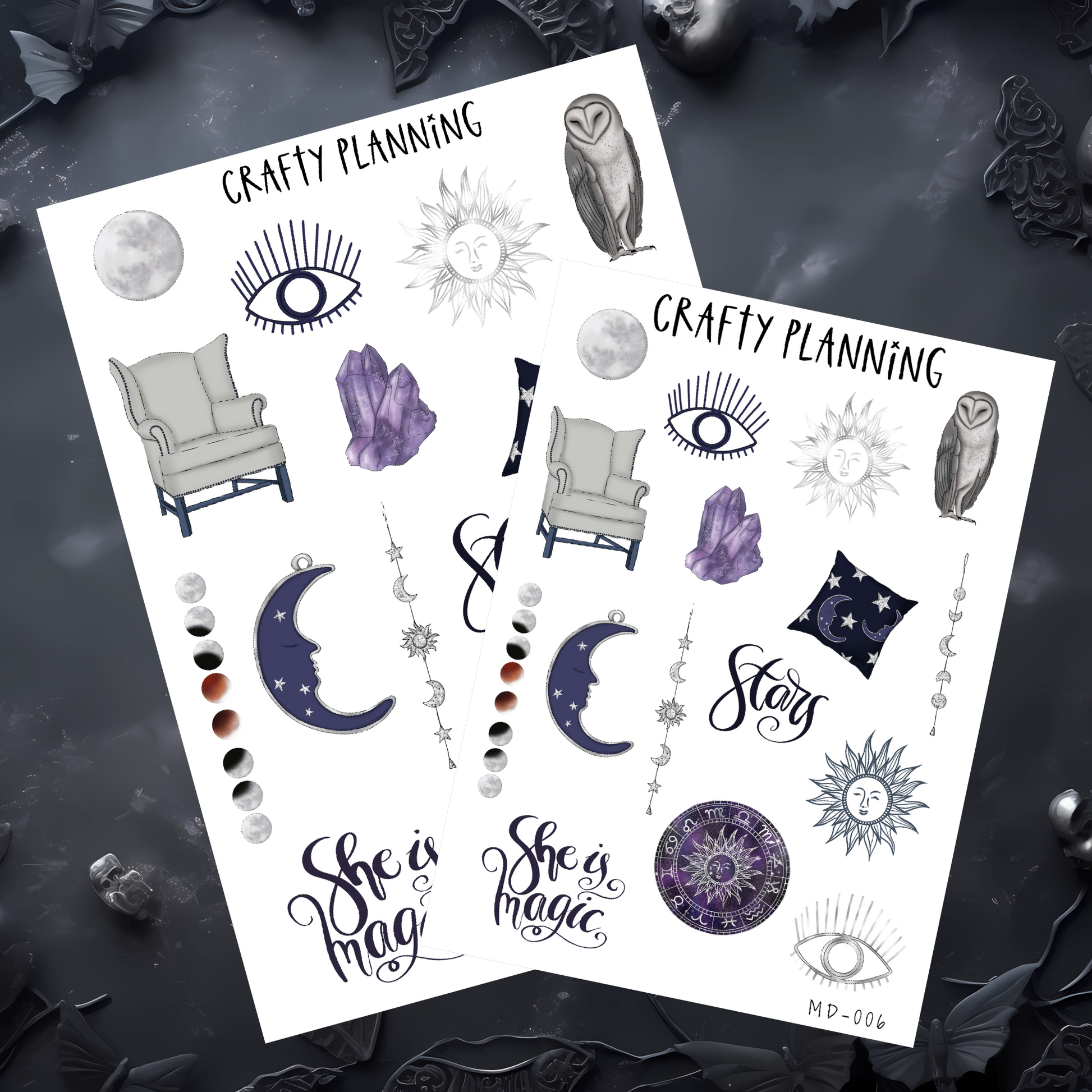 These deco sticker sheets are available in a large 5 x 7" sheet or mini 3.5 x 5"