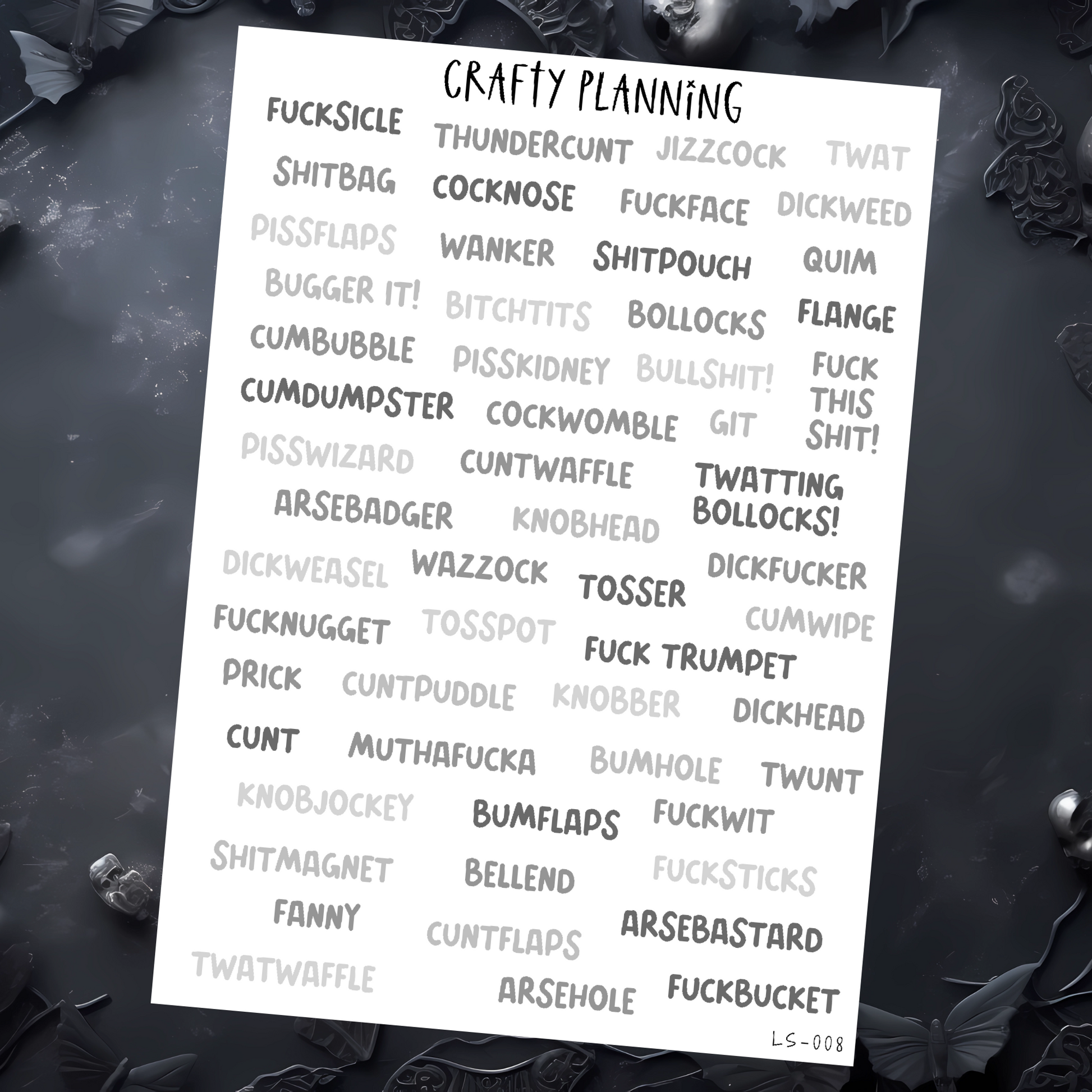 The popular sweary stickers are back, now in a new font with all the words on one sheet, and they come in more colour choices too!
