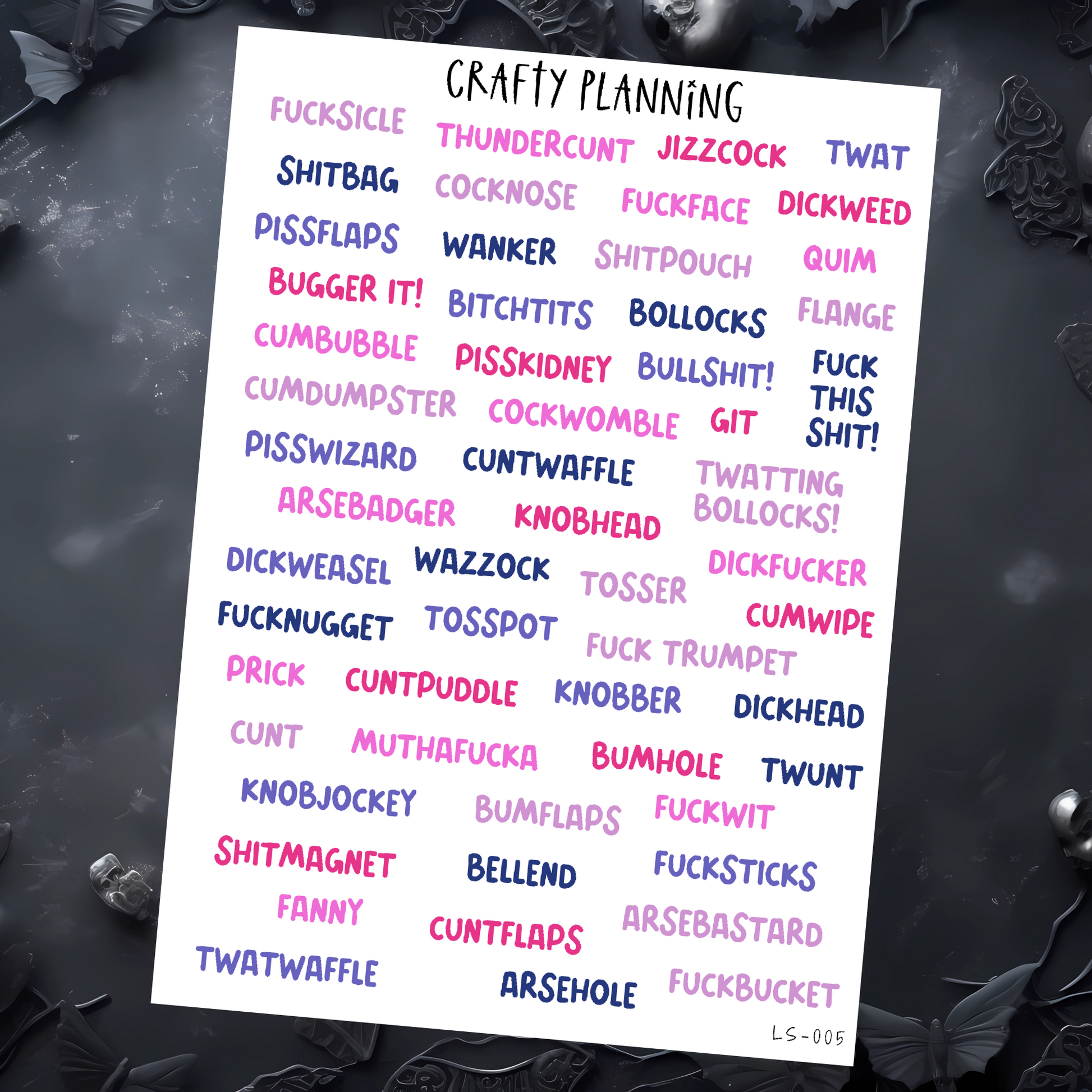The popular sweary stickers are back, now in a new font with all the words on one sheet, and they come in more colour choices too!